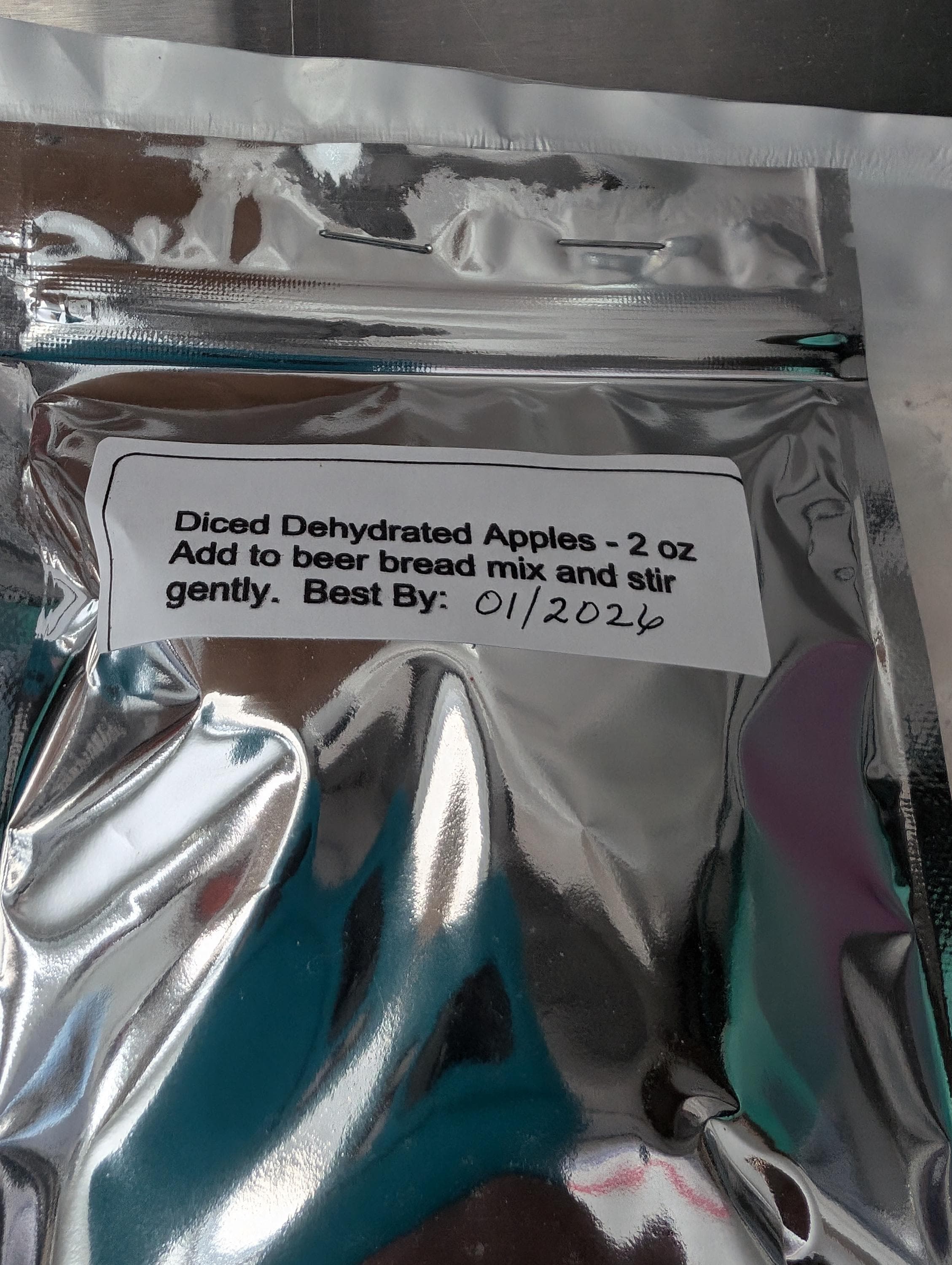 Apple Fritter beer bread is one of our top sellers! I mix all the spices by hand for the bread that gives it that unique apple pie flavor! After much searching and sampling, I finally found a diced apple that has all the requirements to compliment this mix and packaged it separately, so it doesn't get dried out by the mix. Apple Fritter Beer Bread Mix is a delicious, easy-to-make bread mix that combines the sweet, warm flavors of apple fritters with the texture of beer bread. Simply add a bottle of your favorite beer (This bread works THE BEST with apple cider beer, but any beer will work, except dark beers) to the mix, stir, and bake to enjoy a golden, aromatic bread with a soft interior and a light, slightly crispy crust. The result is a scrumptious loaf with a sweet and spiced flavor reminiscent of a classic apple fritter, without the frying! Drizzle or spread a glaze over the top, you can even use warmed vanilla frosting! Perfect for any occasion, from cozy mornings to family gatherings. I make each order as it comes in for freshness. One order is for 1 mix which makes a regular size loaf or 3 mini loaves! Share with family and friends for a great homemade gift! All products are made in my licensed kitchen in my home, in which nuts, dairy, soy, wheat, and other potential allergens may be present. From my door to yours! (FREE SHIPPING CANNOT BE COMBINED WITH OTHER DISCOUNTS)